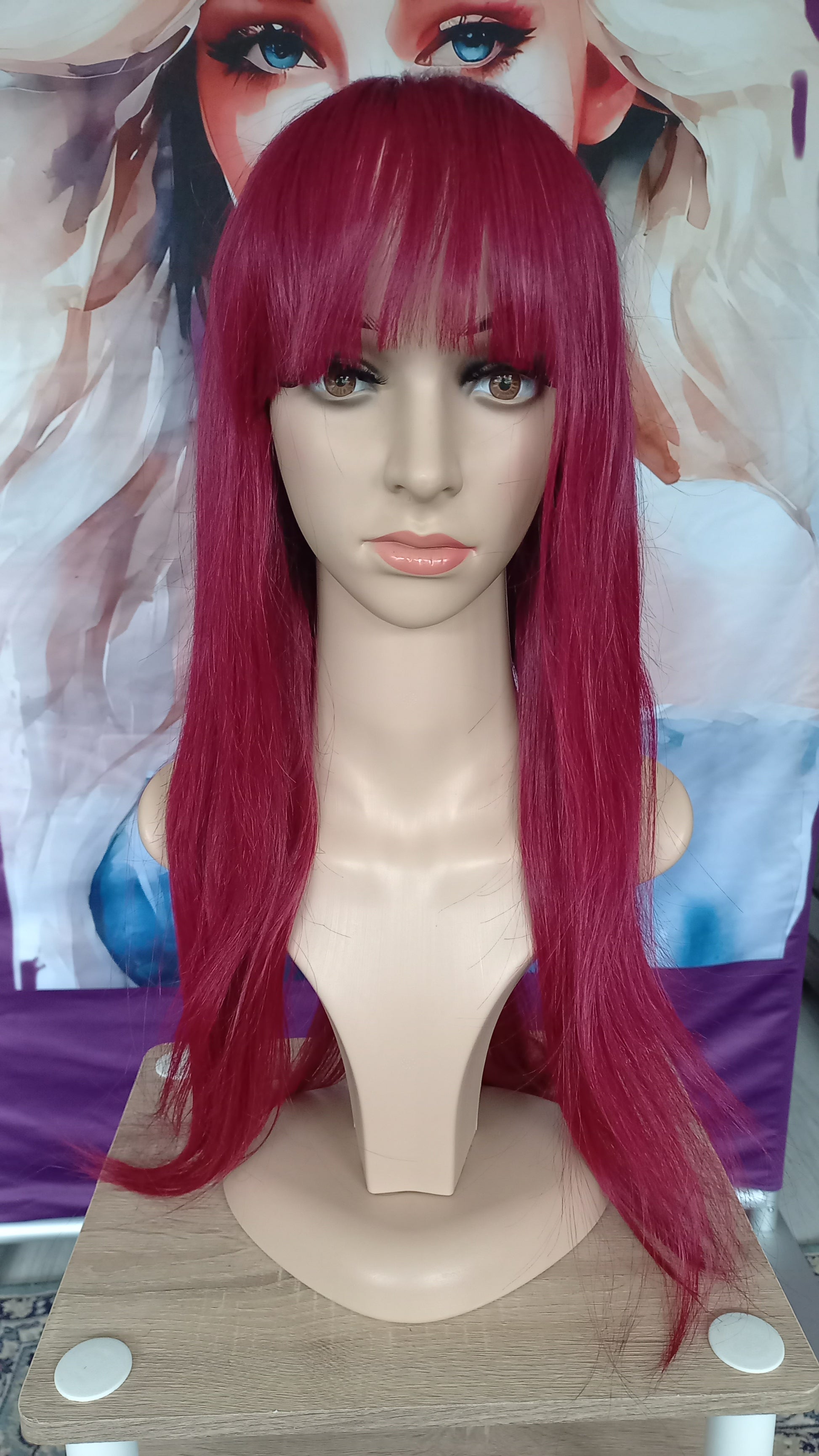 - Haarstruktur: Glattes Haar mit Pony