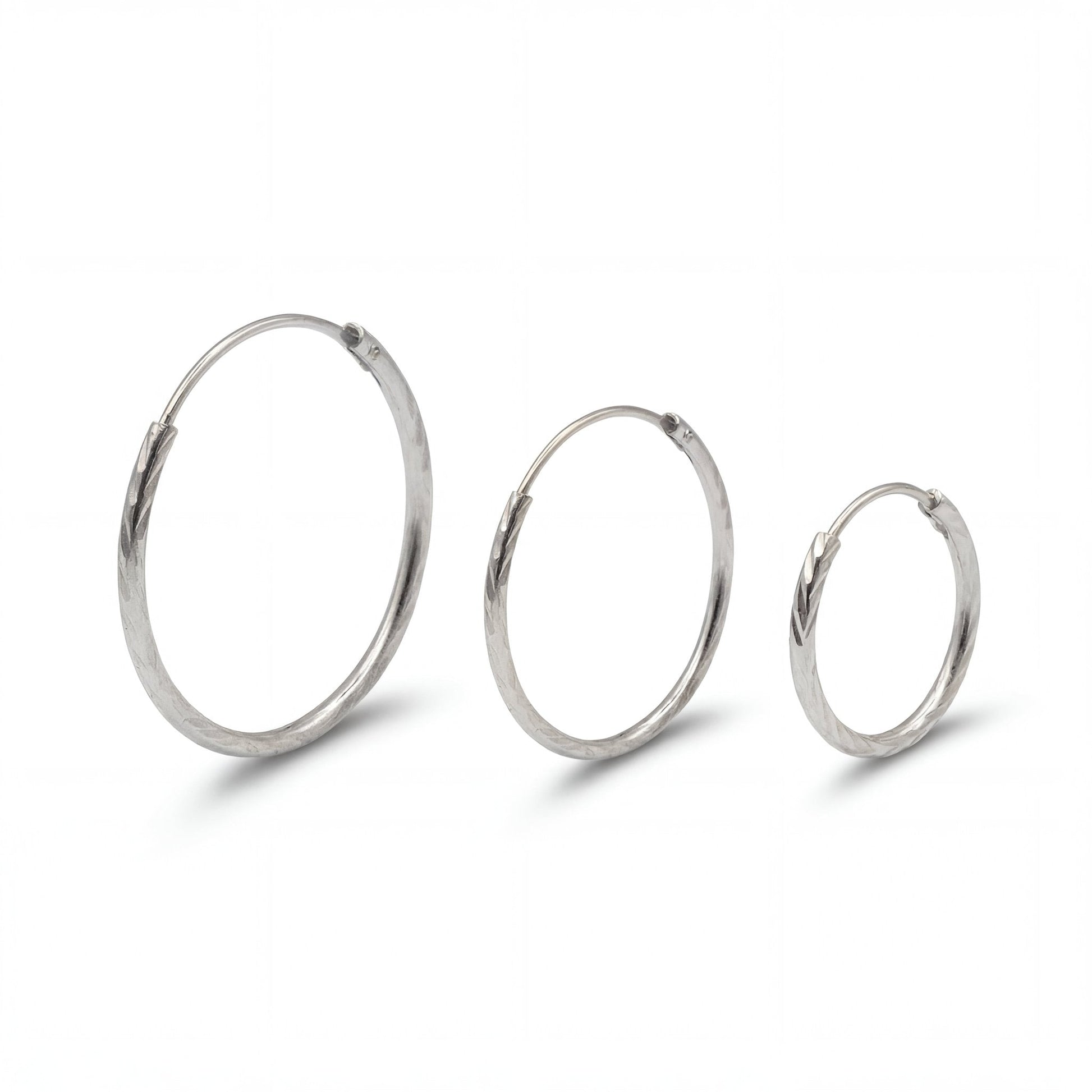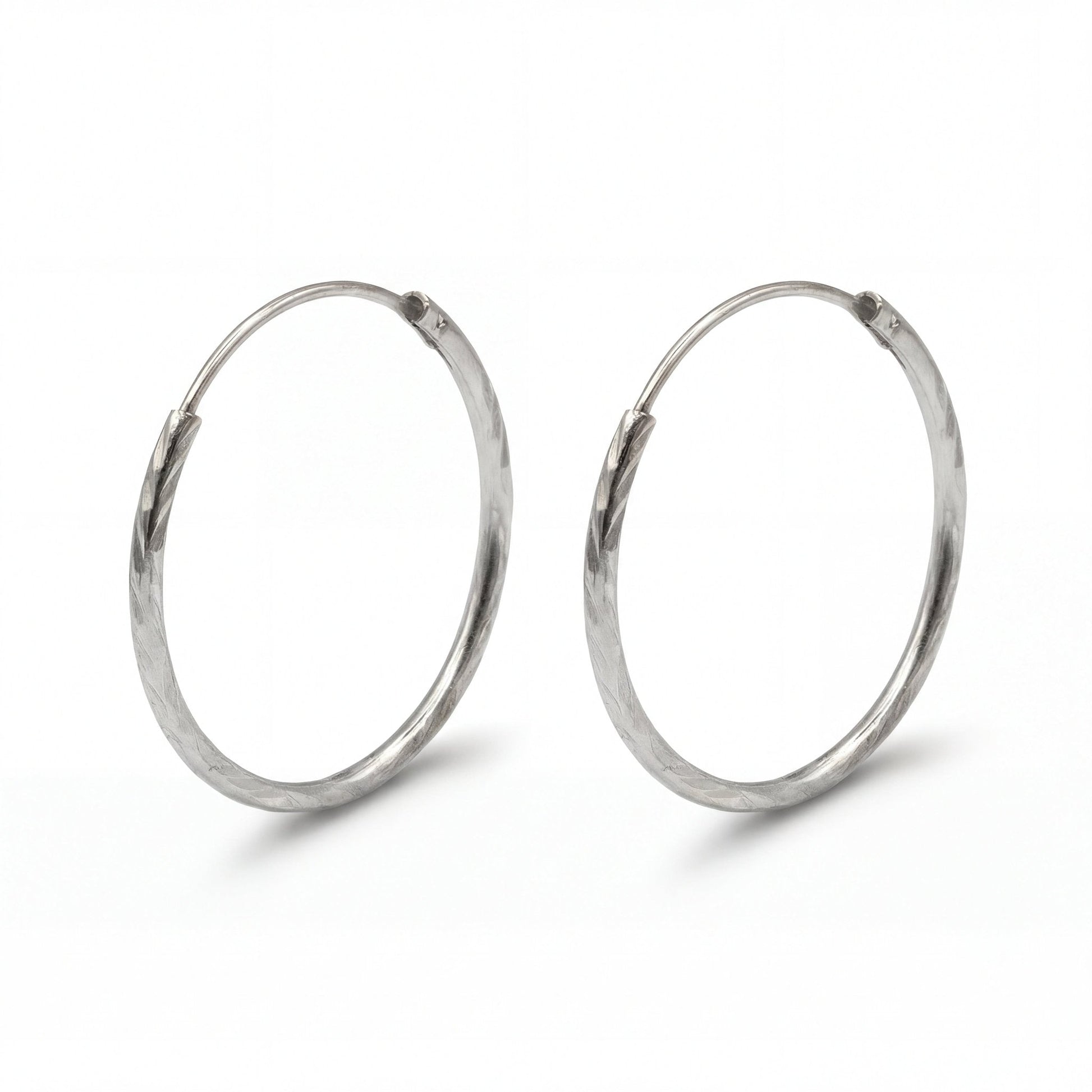 Each facet acts as tiny mirror, reflecting and refracting light to create jewelry-box shimmer without stones.The diamond-cut finish represents the pinnacle of metal finishing techniques – achieving diamond-like brilliance through pure craftsmanship rather than gemstones. This sophisticated surface treatment elevates classic hoops into sparkling statement pieces that catch attention while maintaining refined elegance.