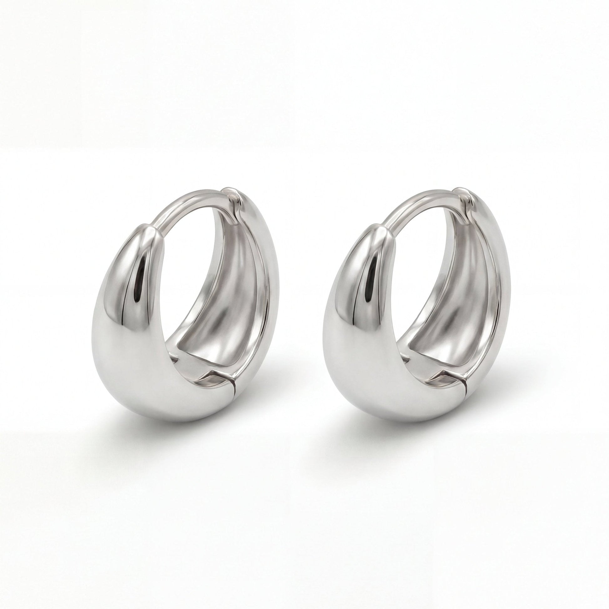Choose between the classic variant in polished sterling silver for cool minimalist sophistication, or the luxurious 18-carat gold plating for warm, golden radiance. The small hoops feature a 10mm width that creates subtle statement appeal without overwhelming – the perfect balance between presence and wearability.