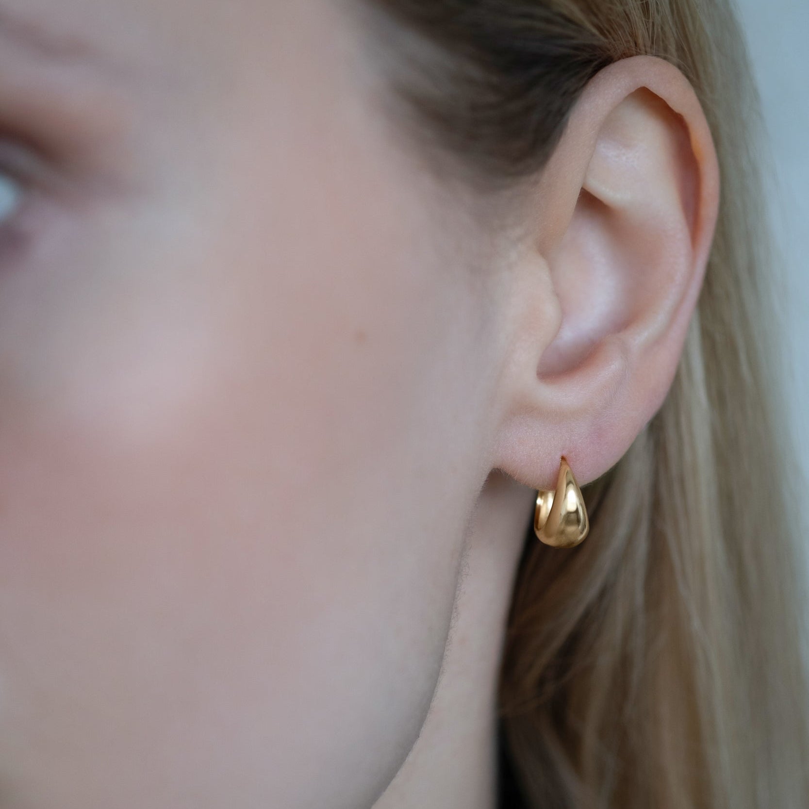 The Nara Hoops convince through their pleasant lightweight feel despite the chunky appearance, and a timeless design that effortlessly transitions from casual to elegant styling. The smooth polished surface creates continuous shine that complements any look, while the compact size ensures all-day comfort.