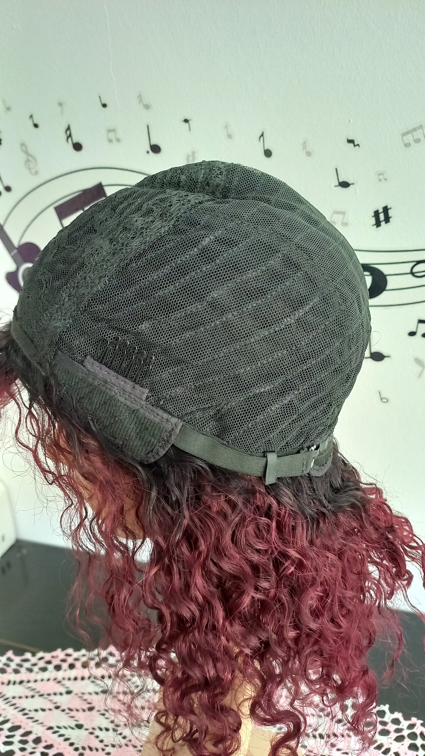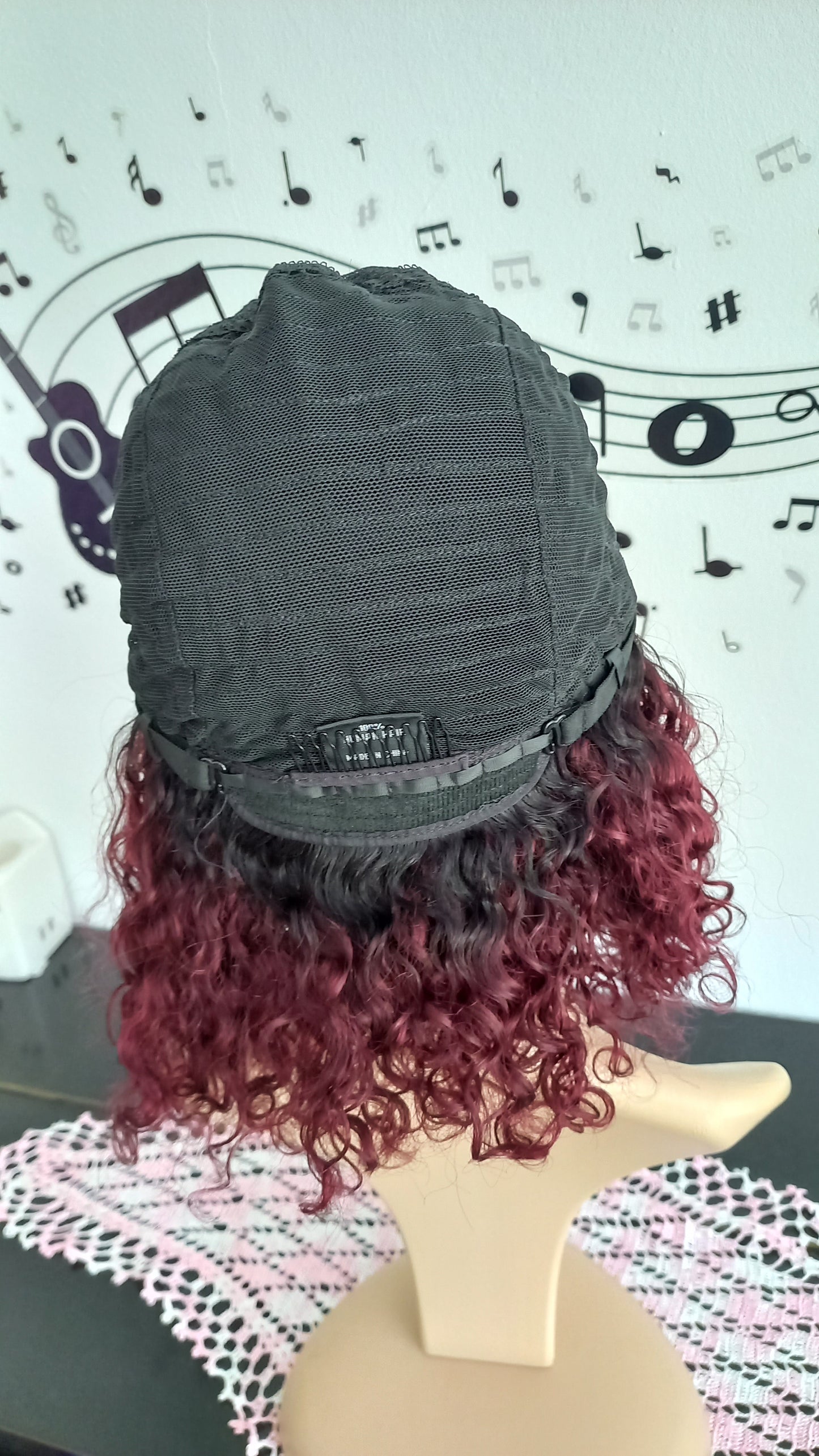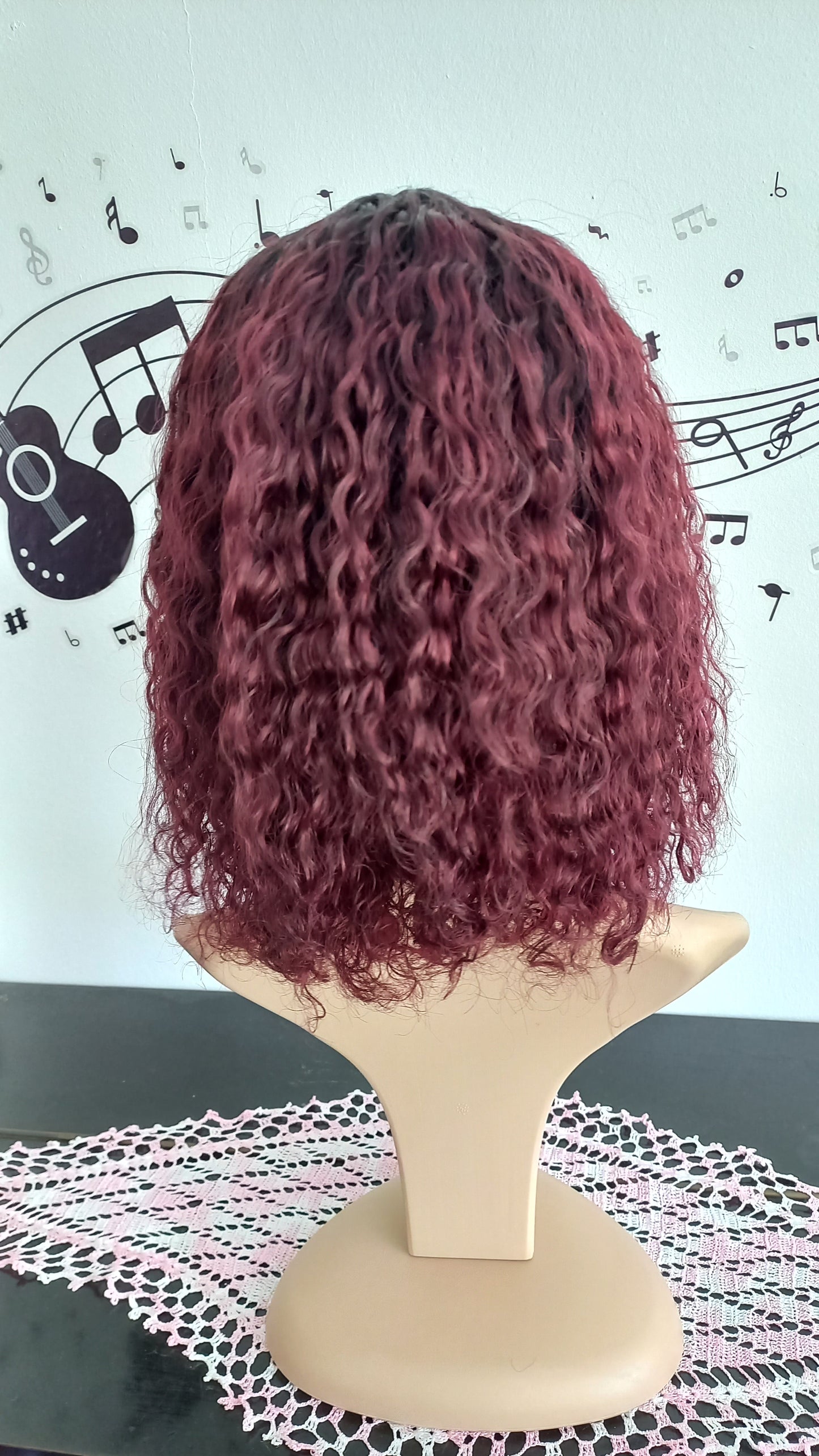 Bob Lockiges Burgundy Echthaar Perücke mit Pony