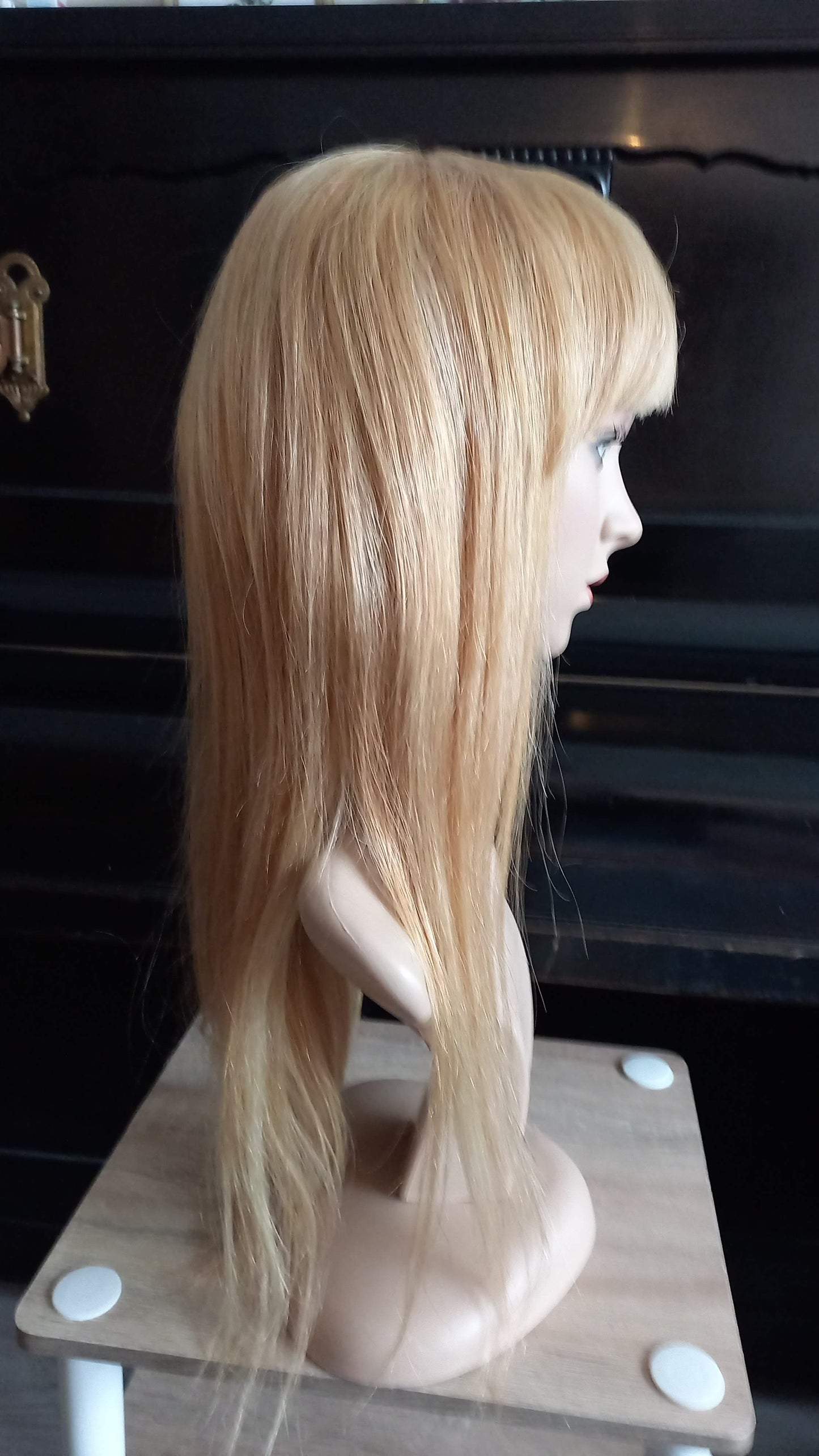Lang Echthaarperücke Hell Blond mit Pony